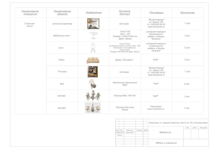 7.По утвержденным 3D-эскизам (визуализации) Вашего будущего интерьера изготавливаем чертежи и составляем ведомости.