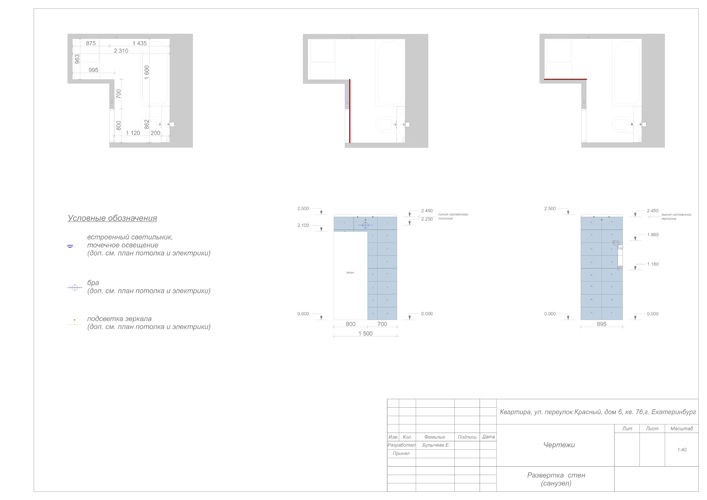 (указанеие отделочных материалов, выключателей и розеток, настенных осветительных приборов и т.п.)